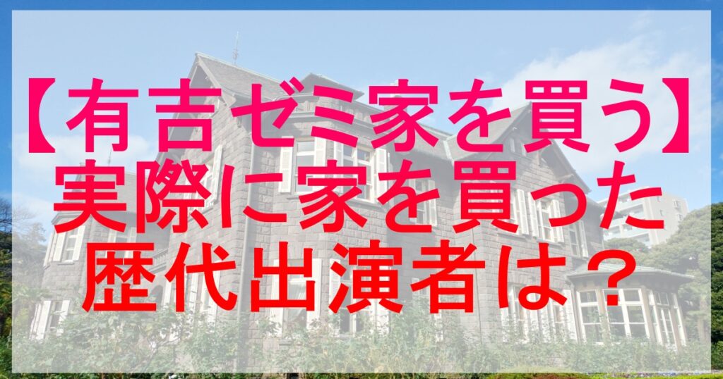 【有吉ゼミ家を買う】歴代出演者で実際に家を買った人は?(写真)