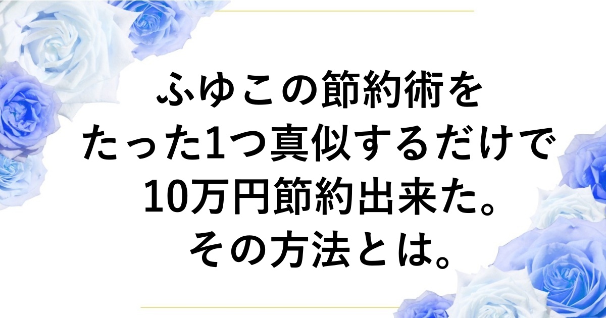 今回は「節約オタクふゆこさんの節約術」をたった1つ真似しただけで、私が1年半だけで約10万円も節約出来た方法を紹介します。